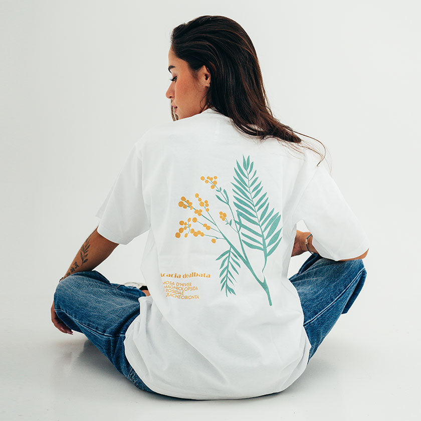 T-shirt Unisexe Mimosa Acacia Dealbata Blanc