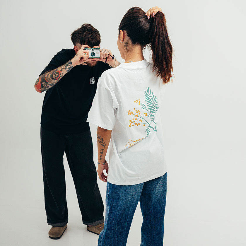 Ce t-shirt inspiré par les mimosas chers à la Côte d'Azur et imaginé par l'équipe Pan Bagnat est une pépite. Il possède une coupe qui siéra à toutes les morphologies, se situant entre l'oversize et l'ajusté. Une coupe relax et un tombé fluide qui te permettront de l'associer à un jean, porté plutôt décontracté ou légèrement rentré à la ceinture pour styliser le tombé. Idéal pour les adeptes du style 90's, cette pièce unisexe permettra à chacun des membres de la famille d'adopter les vêtements Pan Bagnat PNBT, en inondant ton chemin par la beauté solaire du Mimosa "acacia dealbata"